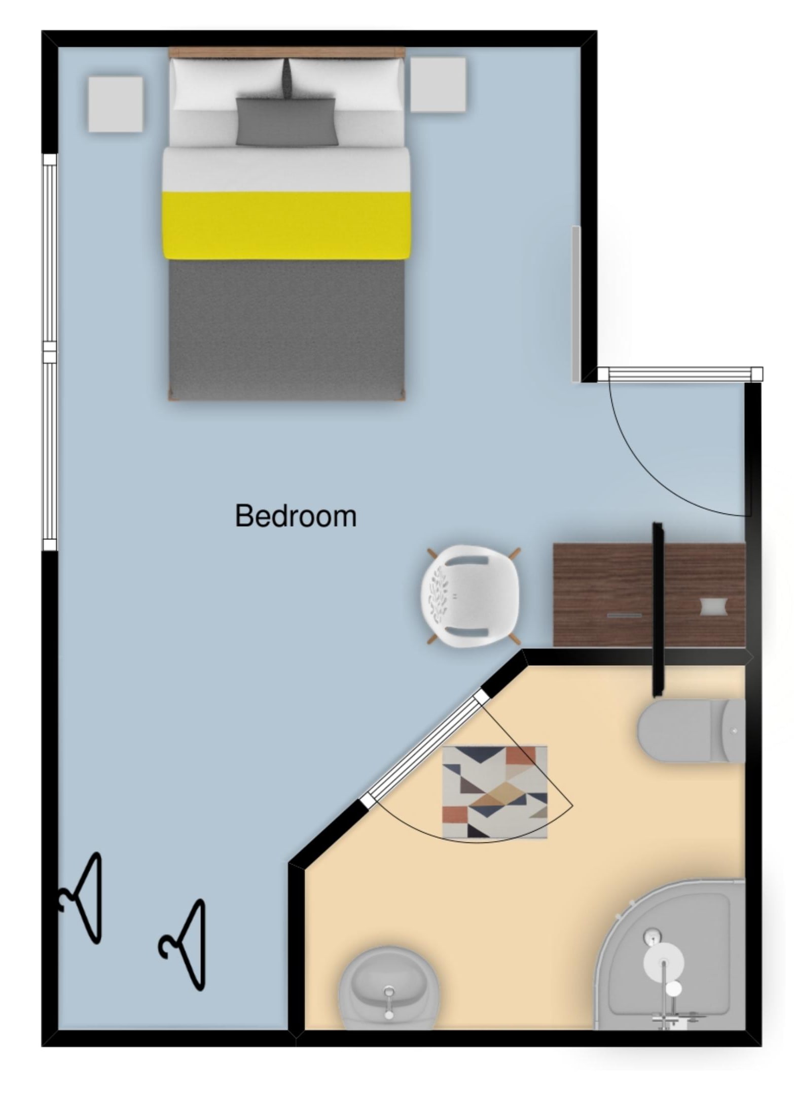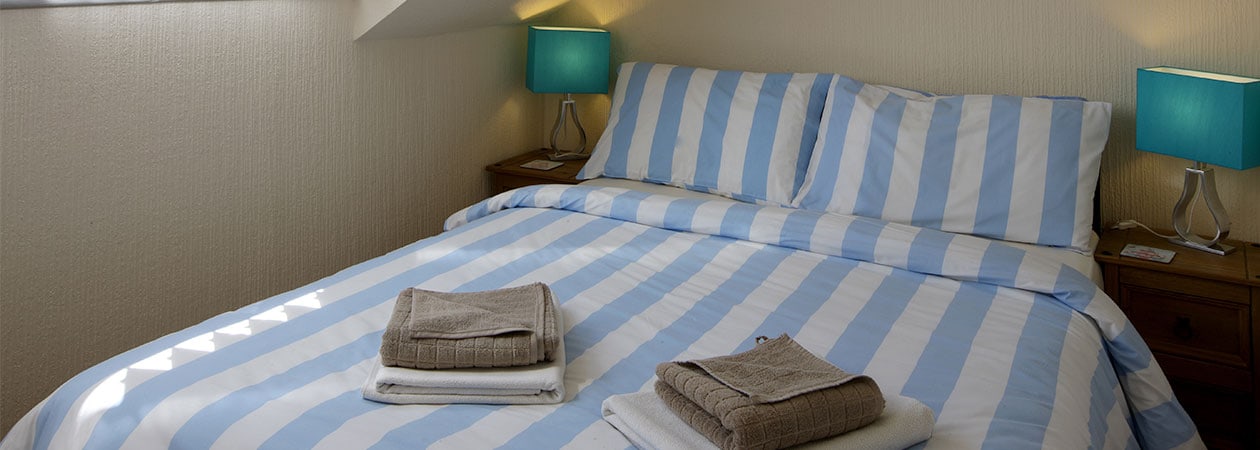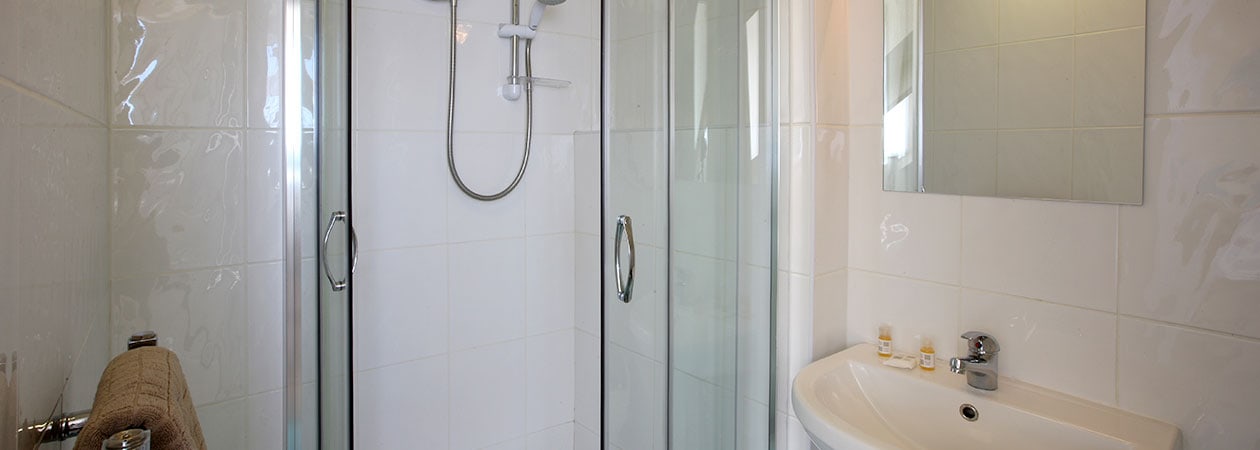Small double room located in a Victorian terraced house, 5-minutes walk from main reception. Located on the top floor and accessible by stairs only. This room features an en-suite shower room and small flat screen TV.
