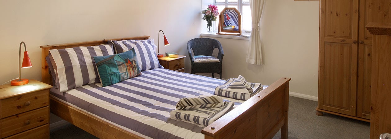 Shore is a 1 bedroom apartment, with a separate bedroom, living and dining area and fully equipped kitchen. Centrally located at the back of our Starfish house building on Silver Street.
